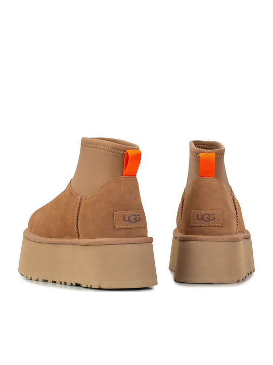 Ugg Australia Classic Mini Dipper Δερμάτινα Γυναικεία Μποτάκια Chestnut
