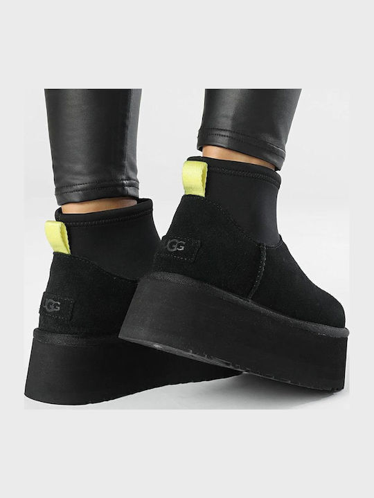 Ugg Australia Ultra Classic Mini Platform Suede Γυναικεία Μποτάκια με Πλατφόρμα & Γούνα Μαύρα