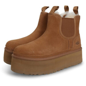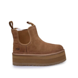 Ugg Australia Neumel Δερμάτινα Γυναικεία Chelsea Μποτάκια με Μεσαίο Τακούνι Camel