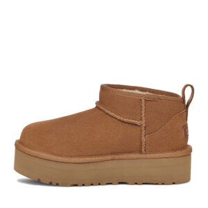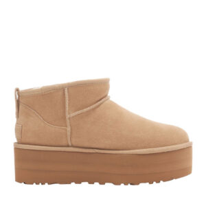 Ugg AustraliaClassic Ultra Mini Platform Δερμάτινα Γυναικεία Μποτάκια Μπεζ