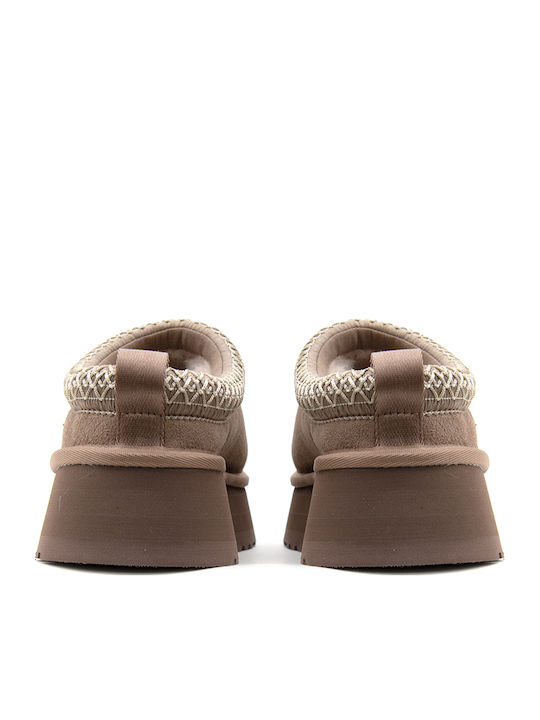 Ugg Australia Tazz II Κλειστές Δερμάτινες Γυναικείες Παντόφλες Μπεζ / Πούρο Regular Fit